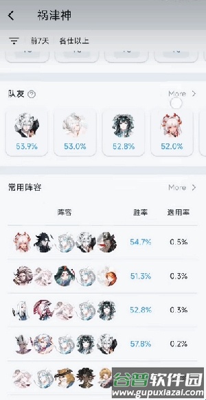 实时胜率查询:统计全服式神在不同段位中的胜率排名;
