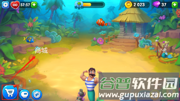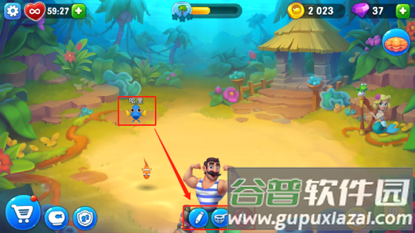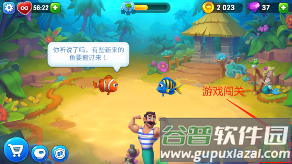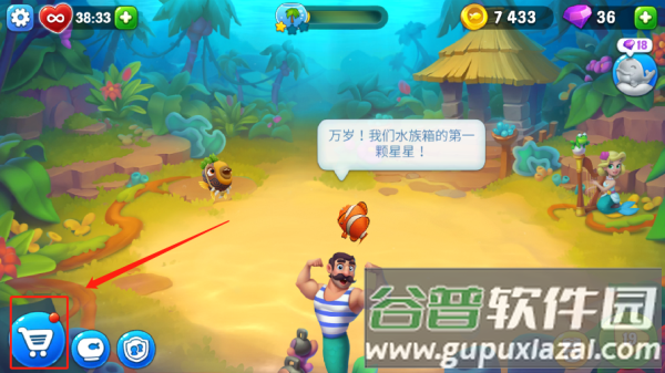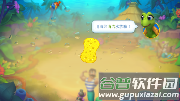 1、将游戏安装到手机后,首先使用海绵球把水族箱清理干净;