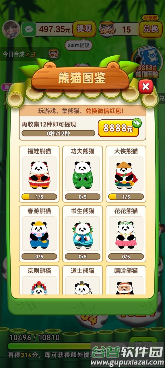 5、图鉴收集:游戏过程中会随机获得熊猫图片,集齐完整图鉴就能领取大额红包奖励。