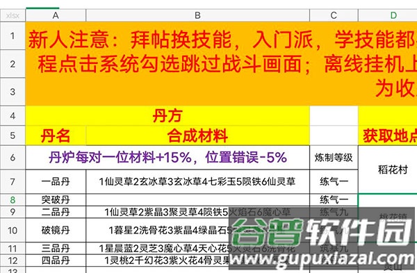 3、【灵山】:仙灵草、聚灵草、玄冰草、天心花、洗骨花、黄级技能升级书;