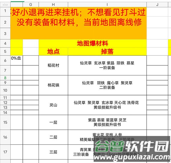 1、【稻花村】:仙灵草、玄冰草、紫晶、陨铁、慕星、一阶装备;