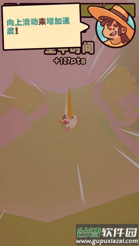 1、向上滑动屏幕,可以让人物或水果加速前进。