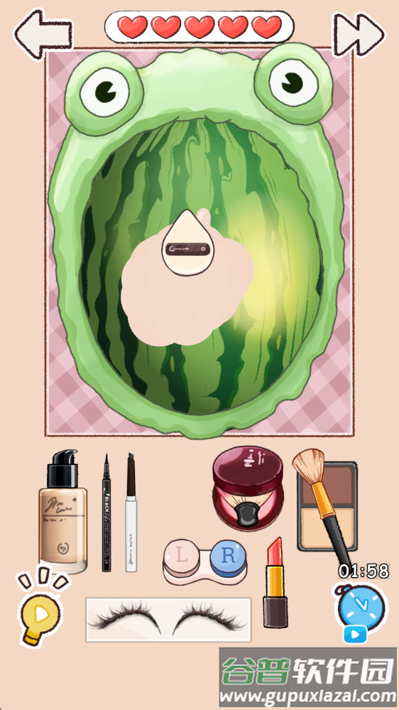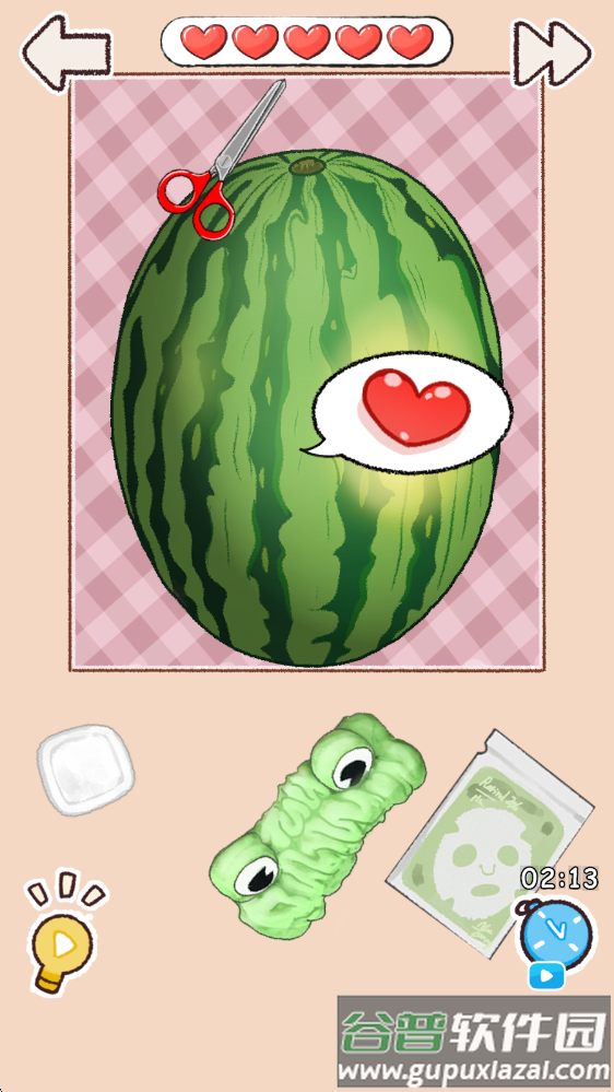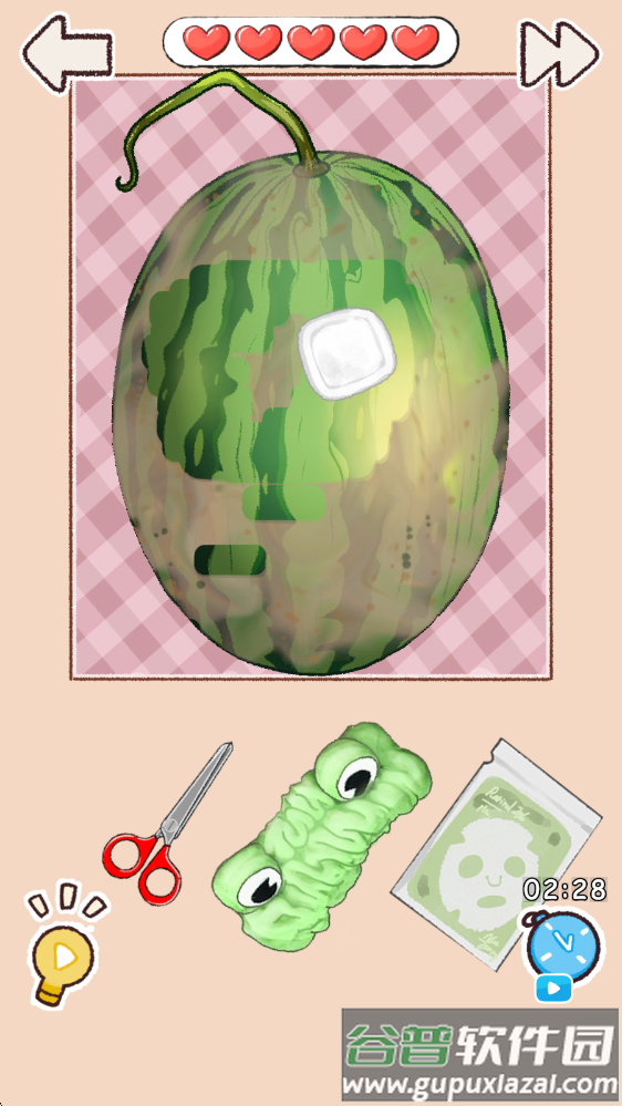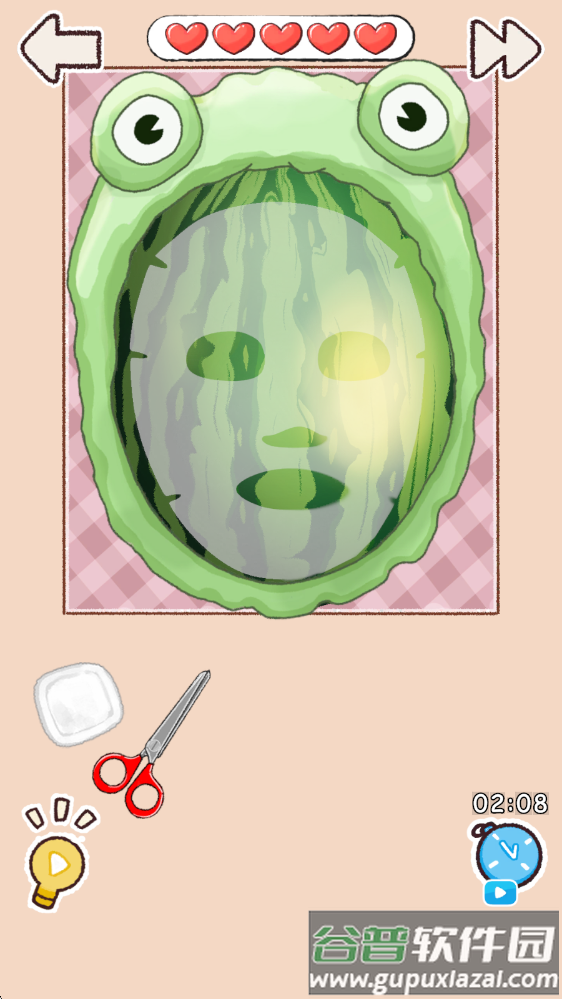 3、然后为西瓜戴上可爱的头套,再敷上一张面膜,即可进入下一个步骤。