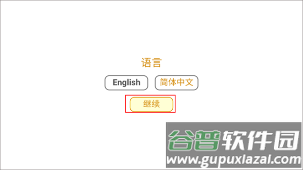 1、初次进入游戏,界面显示English、简体中文与继续三个选项,点击继续按钮即可进入主菜单。