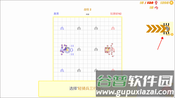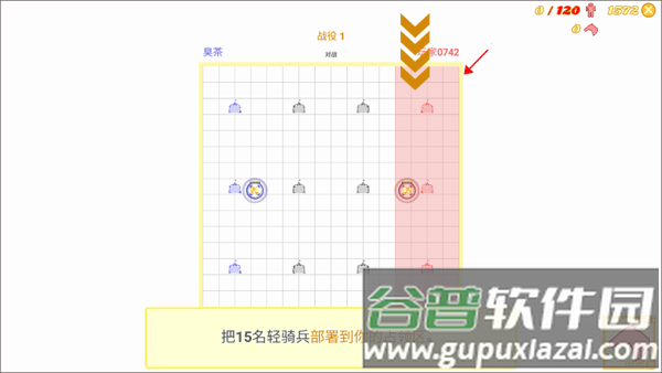 2、跟随新手指引,首先选中箭头所指的轻骑兵单位,将他们布置在指挥官周围的区域。