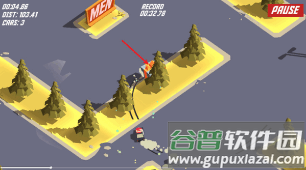 4、注意不要撞到树木或者其他的小车,这样会直接失败。