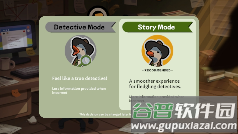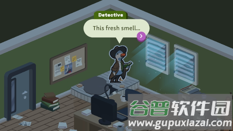 玩家扮演的鸭子侦探虽然运气不佳,却拥有特殊本领,能够检查物证、填补信息空白,最终将案件彻底侦破;在解谜过程中,你需要询问相关角色、勘查案发现场、分析各类线索,一步步挖掘背后的秘密,锁定嫌疑人并完成破案任务;游戏整体流程大约九十分钟,构成一个完整的推理故事。每个角色都有全程配音,个性鲜明,互动方式也很有新意。