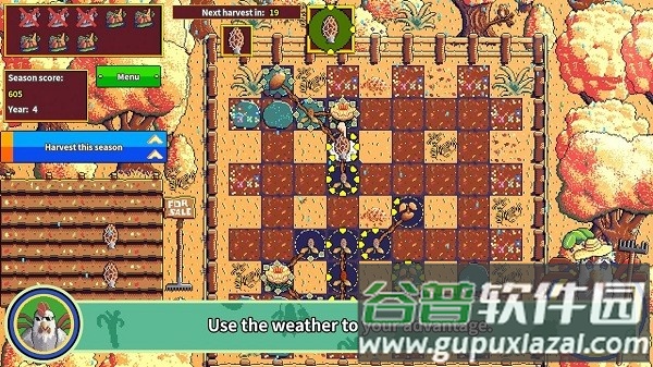 这是一款融合街机元素的农场模拟游戏。每个季节都会开放崭新的花园场景,玩家需要在充满变数的环境中完成种植与收获任务。随着年份增加,游戏将逐步提升挑战难度,引入更多复杂机制。测试自己能够坚持多少个春秋,创造怎样的收成纪录。