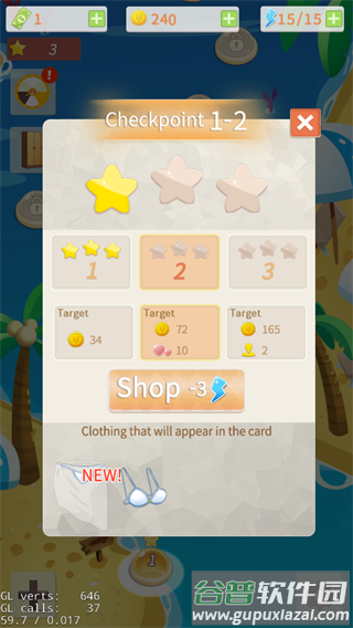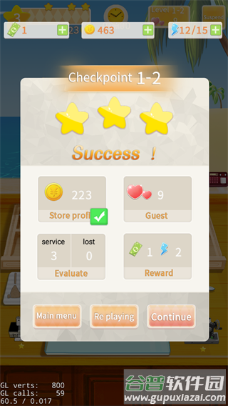 5、成功通过关卡后,根据表现获得相应金币奖励,积累足够数量可以升级工具与店铺;