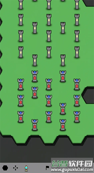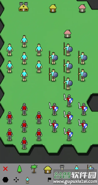 地格上可以建造多种设施:树木会阻碍金币产出,需要派兵清除;房屋能提升金币产量,但造价会逐步增加;哨塔分为普通和高级两种,需要合理布置在边境地带。