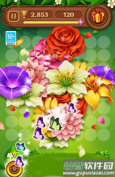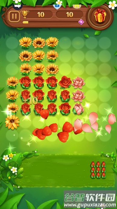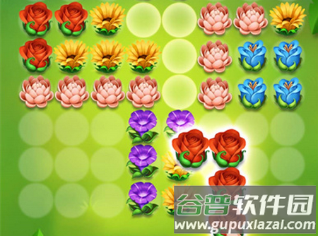 2、将相同花朵移动至空白位置,连成一条直线即可自动消除;