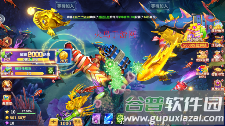 1、捕获鱼群赠送神秘好礼,惊喜奖励接连不断,各个渔场新增特殊奖励机制,那些头顶礼品的小鱼一旦捕获,所有奖品立即归你所有;