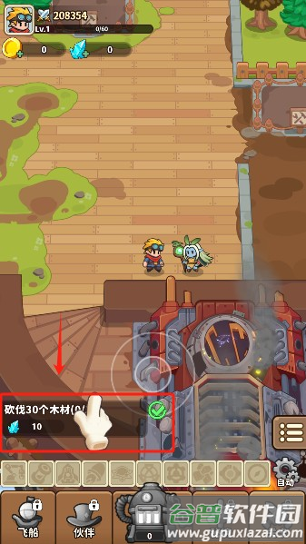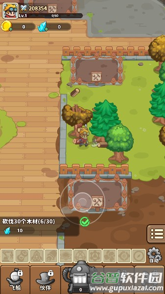 3、根据任务提示砍伐木材,走到树木旁角色会自动开始采集;