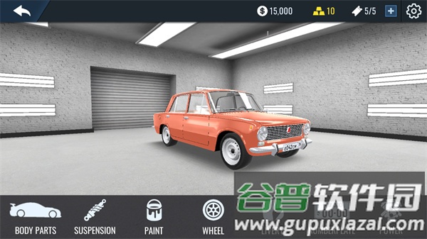 4、拥有车辆后进入车库界面,可对引擎、轮胎等部件进行升级;
