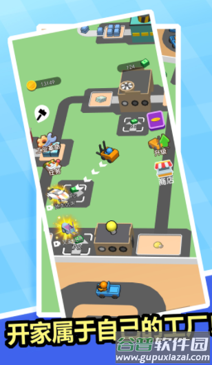 玩家起步仅有一台机器与一名员工,通过逐步发展壮大;在有限场地内升级设备能有效提升生产效率;利用金币购置机器、雇佣工人并建造新工厂,实现收益持续增长。