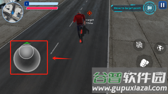 2、使用左下角虚拟摇杆操控角色移动方向;