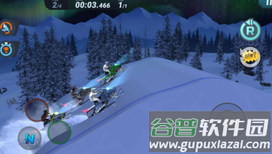 2、支持实时多人竞速,最多八名玩家同时参与雪地极限角逐;