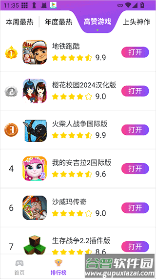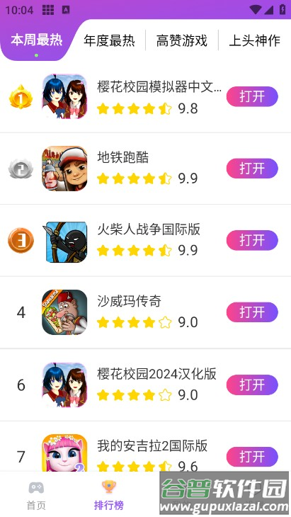 3、通过排行榜功能找到自己想玩的游戏,查看详细信息;