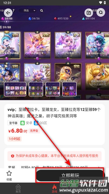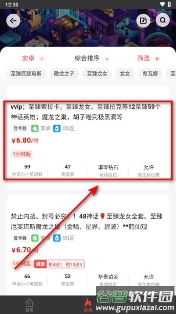 1、租用账号的步骤十分简单,选择游戏和对应套餐就能快速租用;
