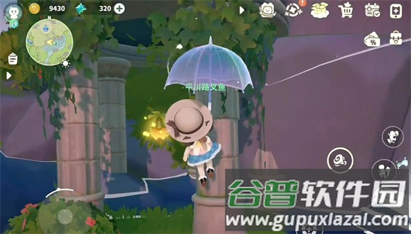 3、跳跳绿肤色:点开大地图选择溪柳小岛,传送到水原高地,对着湖中心的小亭子起飞,在亭子中间找到金色小果实,互动后即可在美容界面解锁跳跳绿肤色;