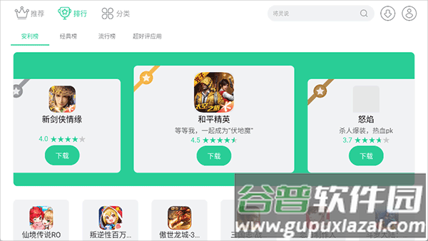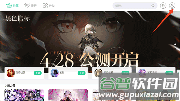 3、登录成功后,在主界面挑选游戏下载,也可以查看排行榜获取热门游戏推荐;