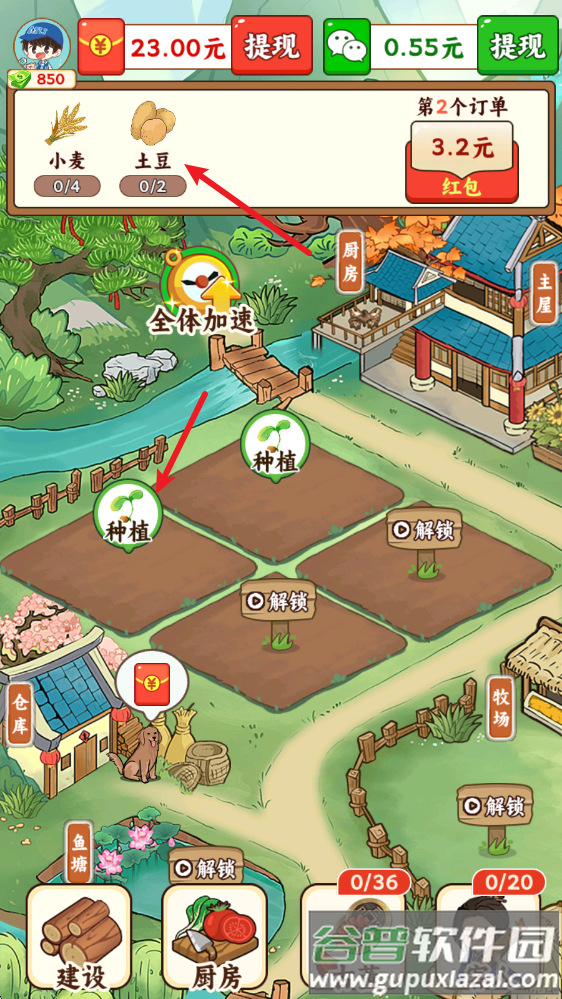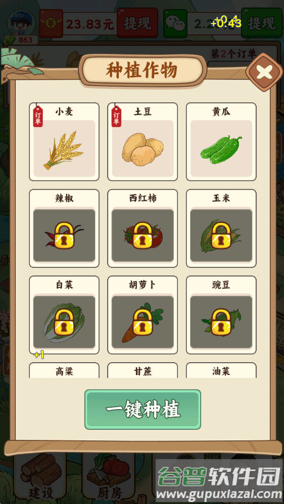 1、点击屏幕上方的订单栏,查看当前种植目标,随后选择下方空地开始种植;
