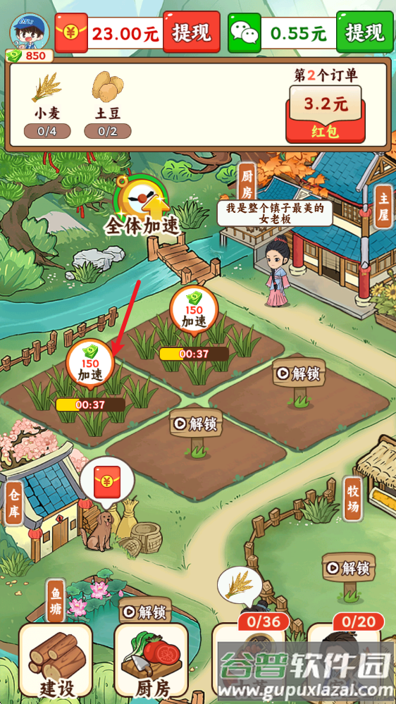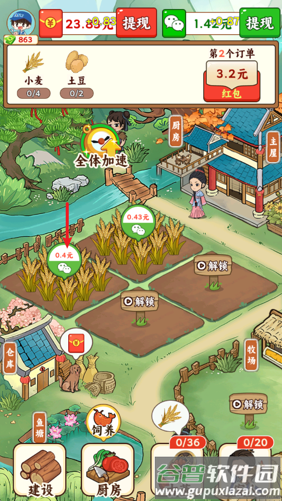 3、随着经营规模扩大,逐步解锁牧场、鱼塘和厨房等设施,体验更完整丰富的农场生活。