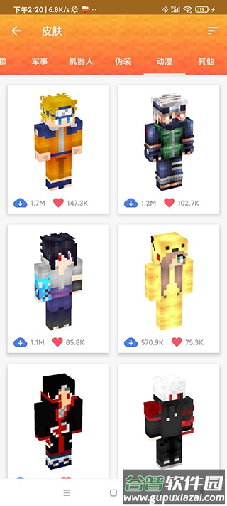 2、选择皮肤分类,可以看到多种风格,例如怪物、女生、男生、人物、英雄、动漫等,点击进入二柱子皮肤详情;