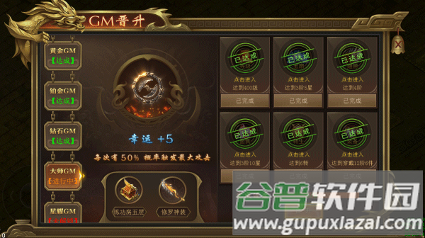 10、游戏内含5套神装,随GM特权逐步解锁,具体信息可在游戏中查看。