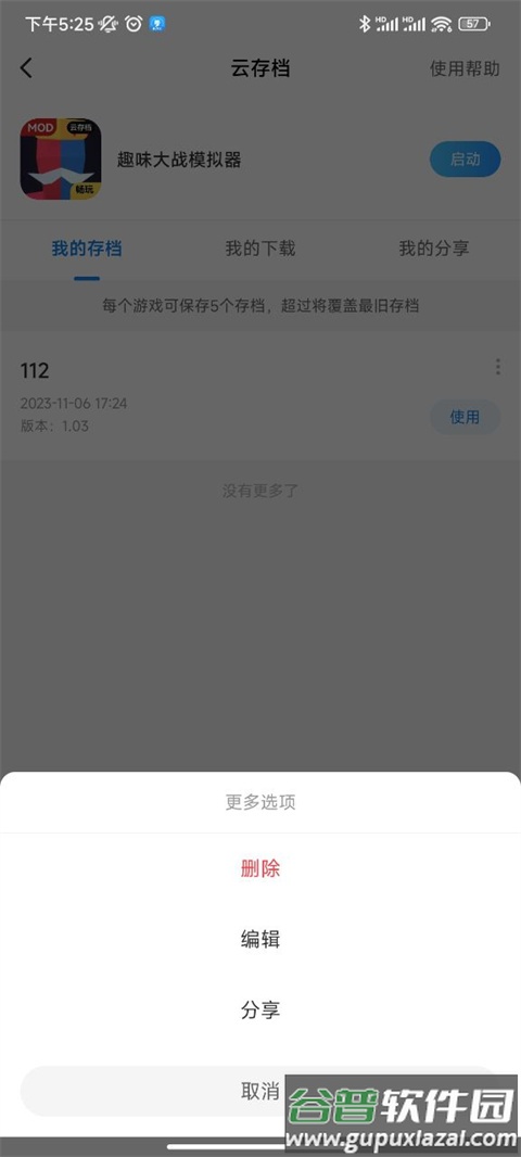 4、每款游戏最多保存5个云存档,超出时可选择覆盖旧存档;