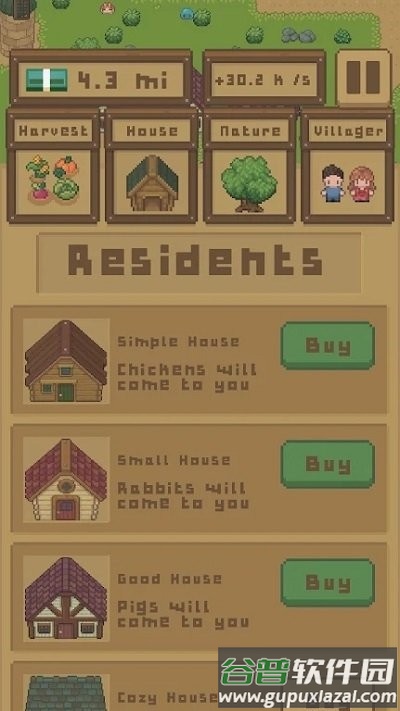 1、像素画风营造出温馨怀旧的村庄氛围,轻松放置就能积累资源,逐步扩建你的专属农场;