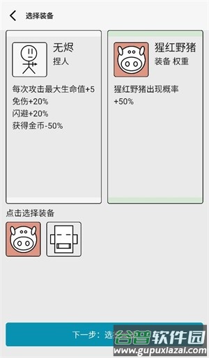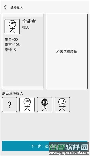 2、开始游戏后,先选择想要塑造的角色类型,确认后点击下一步进入装备挑选环节;