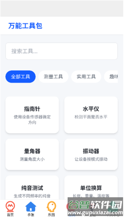 5、工具页面集合了指南针与角度测量仪等常用设备。