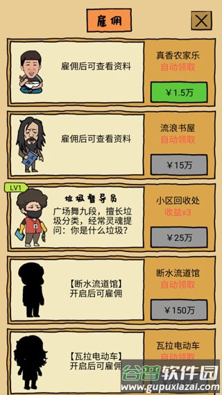 这款模拟经营游戏带来独特的创业体验,玩家从小区垃圾回收起步,逐步积累资源拓展商业版图。初期在社区内进行废品回收,赚取资金后可以投资饭店、书店甚至道观等多种产业。随着业务规模扩大,还能参与有奖答题等趣味环节,让财富增长过程充满惊喜。