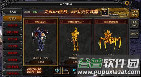 通过界面右上角的天使挑战入口查看任务,角色达到指定等级即可完成对应挑战。任务奖励包含专属称号、钻石及大天使碎片。集齐100个碎片配合创造宝石即可合成顶级大天使武器。380级与1000级是关键节点,分别可获取首把与第二把大天使武器。