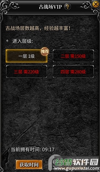 进入需消耗古战场时间,该区域装备爆率显著高于野外。时间耗尽将自动传送离开。使用经验加成道具可最大化收益,推荐搭配光之祝福与小熊猫同时使用。