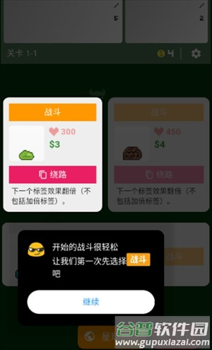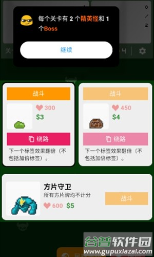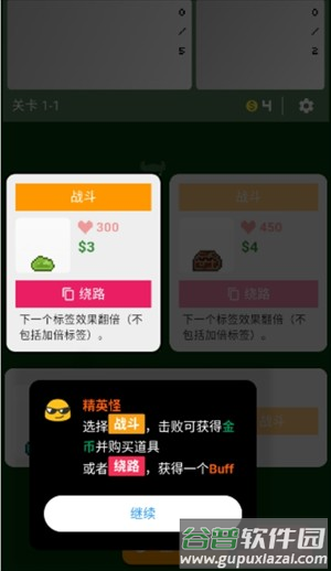 4、遭遇精英怪时可以选择直接战斗,胜利后获得金币用于购买道具,也可绕行获取随机增益效果;