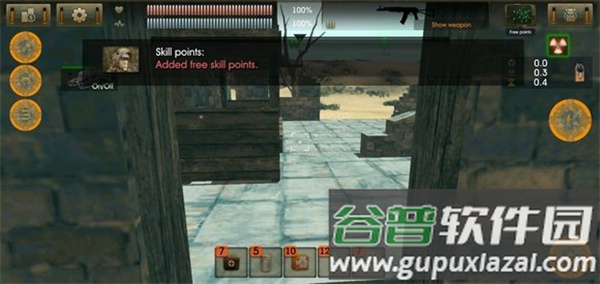 游戏开始后呈现一片荒芜景象,玩家需要快速适应这个危机四伏的环境。左上角的圆形按钮是开启特殊功能的关键,点击后会出现五个实用选项。这些功能能够帮助玩家更好地应对各种挑战,让生存之旅变得相对轻松。开启无限金钱后可以随意购买装备,无限弹药确保战斗不会中断,无限耐力让角色持续奔跑,无敌状态避免意外死亡,扩充武器库存则能携带更多物资。