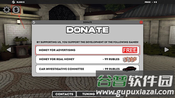 2、若心仪车辆价格高于现有金币,可点击左上角金币图标,选择第一个“free”选项,免费获取5000金币;