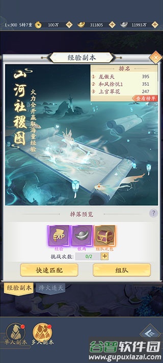 山河社稷图是游戏中经验产出最高的日常副本,仙长每日必做,也是前期提升等级的核心途径。想要快速升级,务必完成此副本。