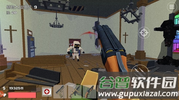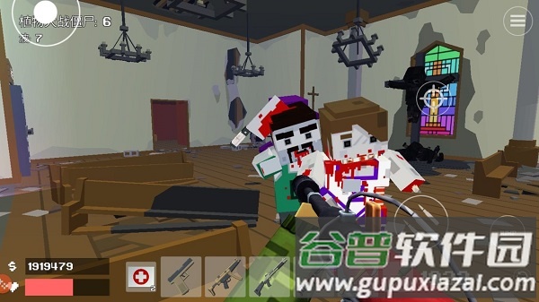 1、点击STARTGAME开始游戏,角色会出现在一个类似教堂的室内场景,正门是僵尸主要入侵通道。