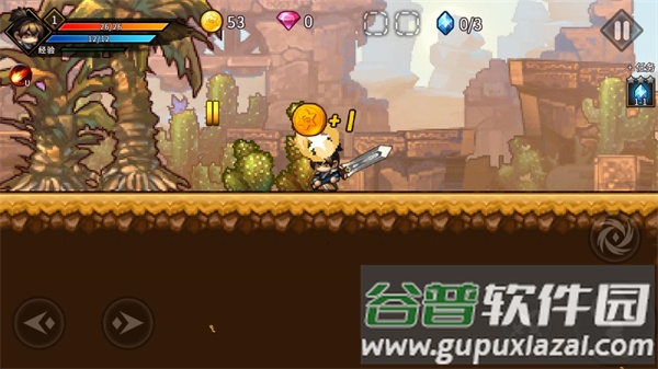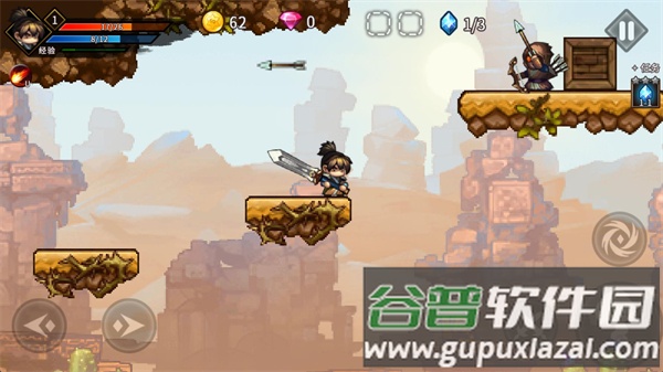 4、关卡内左侧控制移动,右侧为跳跃与攻击键;
