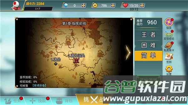 1、进入游戏后可以看到简单、困难和王者三种难度模式,根据自身实力选择合适难度,点击开始即可投入激烈战斗;