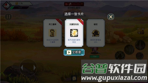 5、冒险过程中会出现各种属性卡片,合理选择可以提升角色能力;