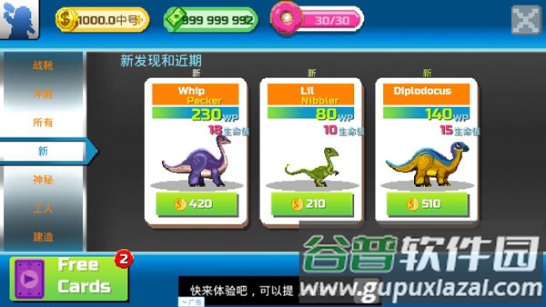 选择恐龙蛋时可以看到不同品种在外形、售价和培育时间上的差异。选定后点击绿色箭头,工程师就会开始培育工作。