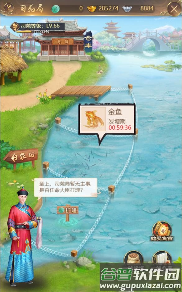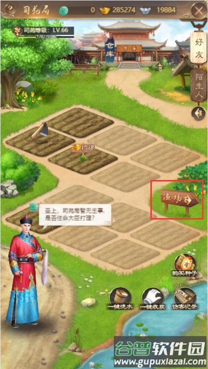渔场与农田共用主事大臣,农田界面设置预种种子,渔场界面设置预养鱼苗。