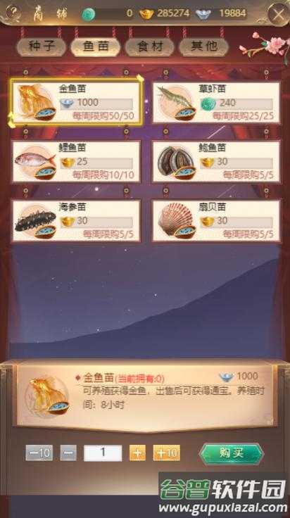 新增渔场与农田功能相似,可在已解锁鱼塘中养殖各类水产品,养殖需先在商店购买鱼苗。