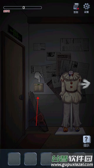 3、进入场景先寻找照明开关,点击墙上的控制装置;