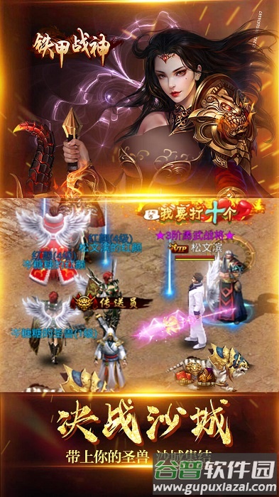 铁甲战神是一款以传奇为背景的冒险类游戏,采用写实风格呈现,玩家在游戏中扮演角色,与其他玩家实时互动,参与多样任务与玩法,体验多种pvp模式带来的战斗快感,还能与兄弟组队征战,共同迎战强敌,捍卫团队荣耀。