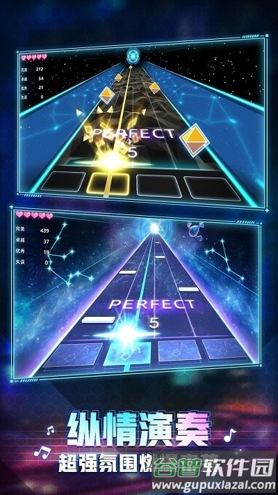 2、曲库涵盖多种风格音乐,每首歌曲设有不同难度级别,适合各阶段玩家;